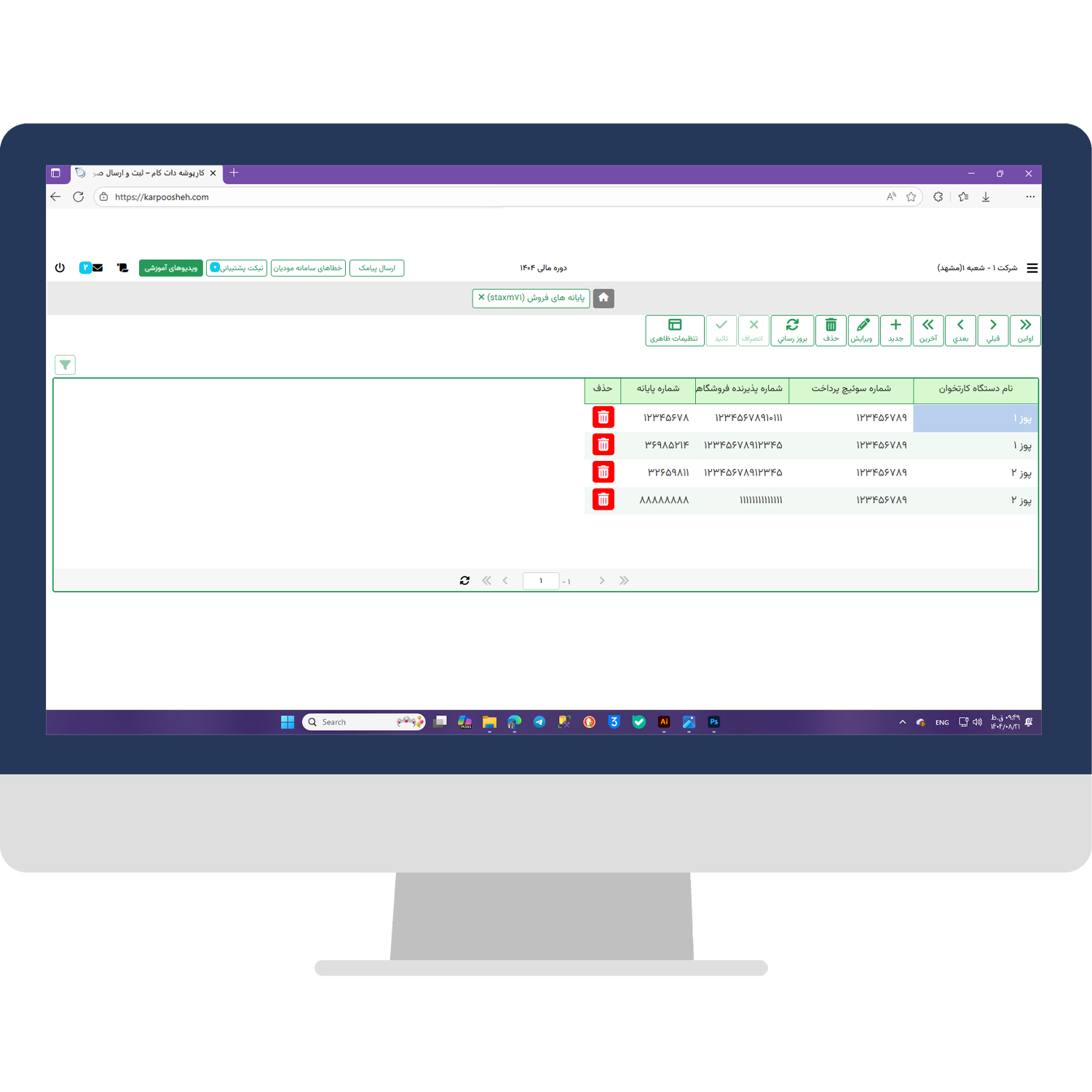 مدیریت و ثبت اطلاعات پایانههای فروش یکی از الزامات مهم در فرآیندهای مالی و مالیاتی کسبوکارهاست. با استفاده از این قابلیت در سامانه کارپوشه داتکام، کاربران میتوانند اطلاعات مربوط به دستگاههای کارتخوان، درگاههای پرداخت اینترنتی و سایر پایانههای فروش خود را بهصورت دقیق و یکپارچه ثبت و مدیریت کنند. این ویژگی به سازماندهی بهتر دادهها، تطبیق سریعتر تراکنشها با اطلاعات مالی و تسهیل در ارائه گزارشهای مالیاتی کمک میکند. همچنین امکان بهروزرسانی و ویرایش اطلاعات پایانهها در هر زمان فراهم است تا کاربران همیشه از صحت و بهروز بودن دادههای خود اطمینان داشته باشند.